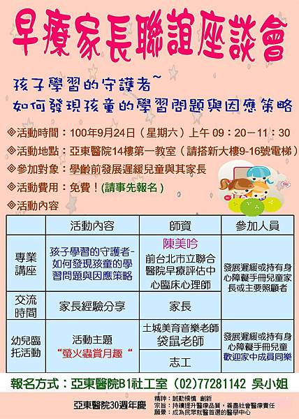 辦理日期:100年9月24日(六) 上午9:20-11:30。