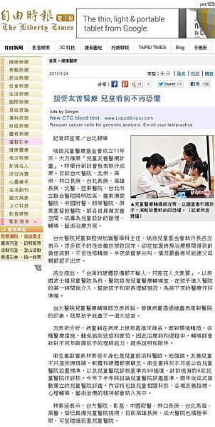 瑞信兒童醫療基金會成立11年來,大力推展「兒童友善醫療計畫」,昨舉行研討會發表執行成果。目前台大醫院、北榮、高榮、林口長庚、台北長庚、高雄長庚、北醫、亞東醫院、台北市立聯合醫院陽明院區、羅東博愛醫院、中國附醫、耕莘醫院、屏東基督教醫院,都各自具備友善空間,或專為兒童設計的護理、輔導、藝術治療方案。