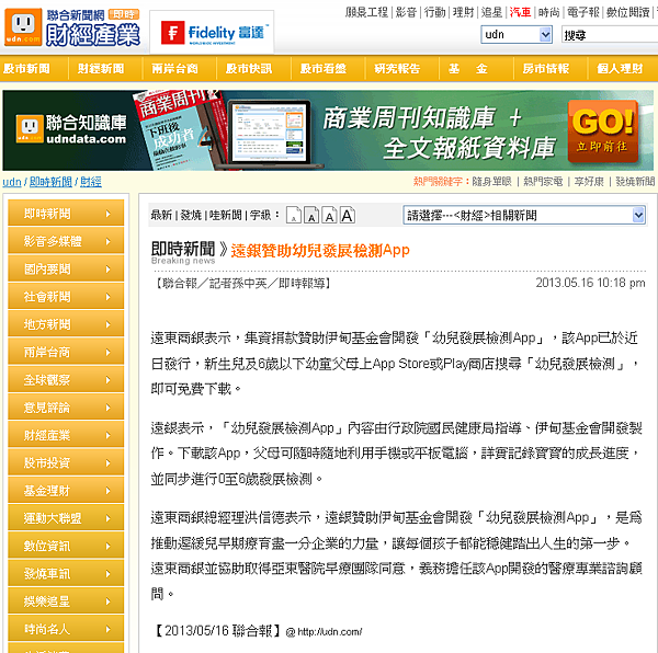 遠東商銀表示,集資捐款贊助伊甸基金會開發「幼兒發展檢測App」,該App已於近日發行,新生兒及6歲以下幼童父母上App Store或Play商店搜尋「幼兒發展檢測」,即可免費下載。