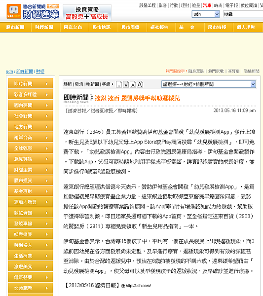 遠東銀行(2845)員工集資捐款贊助伊甸基金會開發「幼兒發展檢測App」發行上線,新生兒及6歲以下幼兒父母上App Store或Play商店搜尋「幼兒發展檢測」,即可免費下載。「幼兒發展檢測App」內容由行政院國民健康局指導、伊甸基金會開發製作。下載該App, 父母可隨時隨地利用手機或平板電腦,詳實記錄寶寶的成長進度,並同步進行0歲至6歲發展檢測。